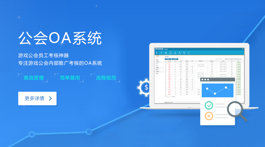 目前,业内已建立的游戏公会有上千家,多数公会直接纳入了商业化的营运体系,公会员工由消费者的身份变成了推广员的身份,那么如何有效的对游戏公会员工进行管理成为一大难题。为此,溪谷软件积极满足市场需求,特推出公会OA系统,解决游戏公会管理及内部推广考核问题,为运营者提供了更高效,更加智能化的解决方案。