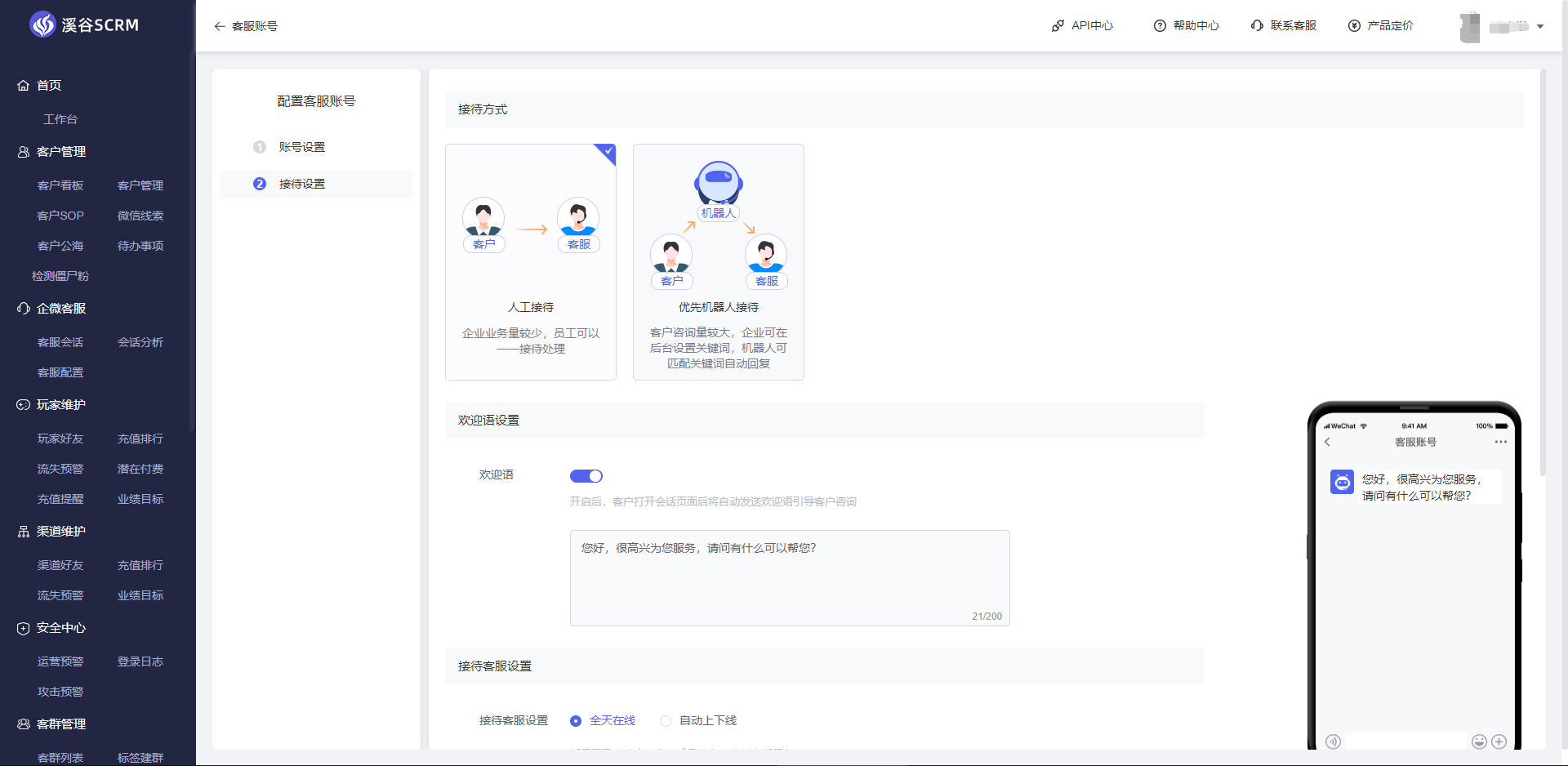 在微信内外7个主流场景接入微信客服,客户无需添加好友,一键发起咨询;