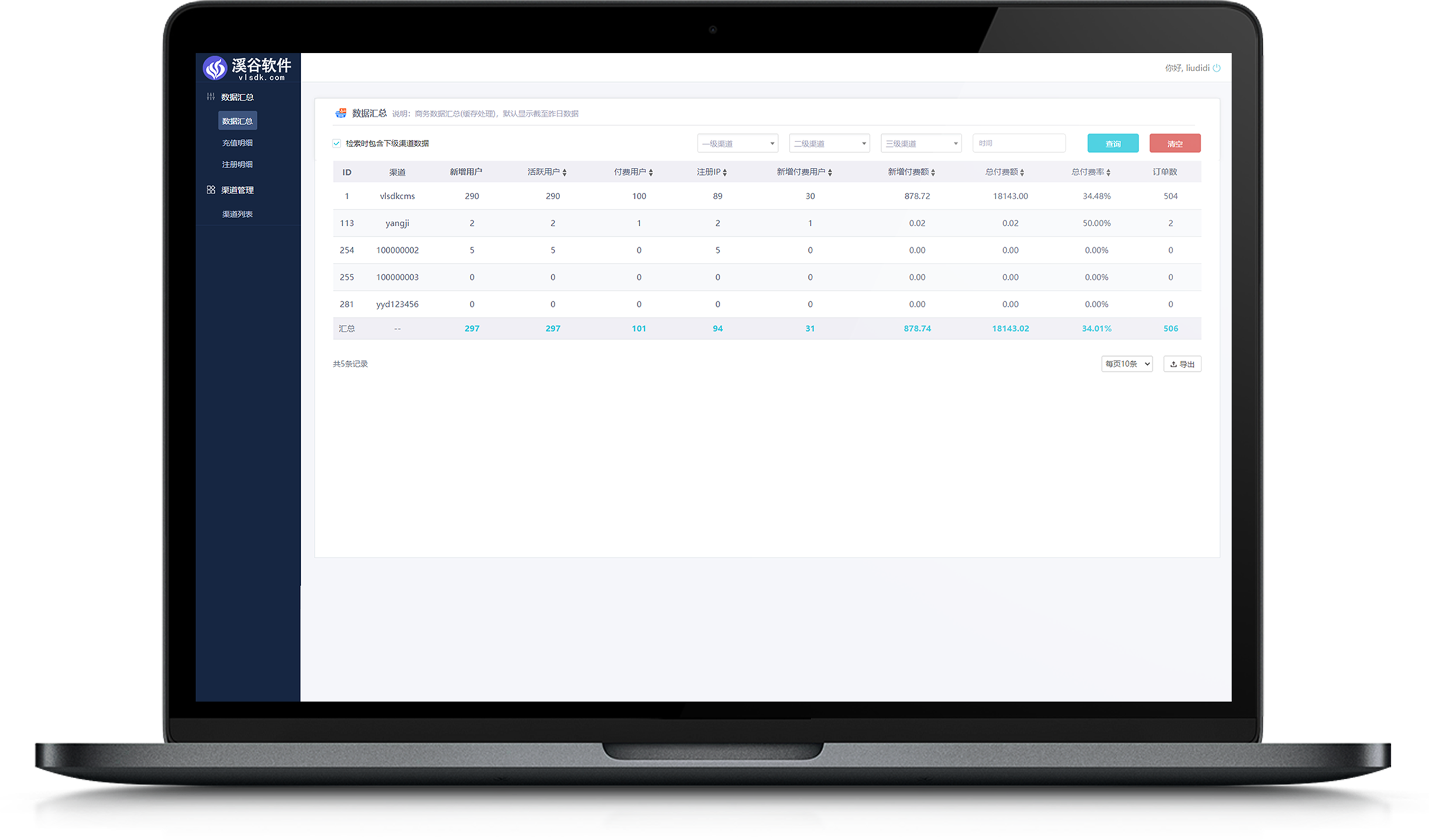 【数据汇总】增加一级、二级、三级渠道筛选项,可逐级筛选数据